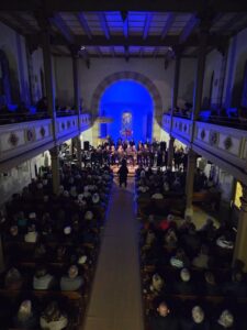 Ein wundervoller Abend liegt hinter uns – voller Musik, Emotionen und begeistertem Publikum. Schon beim Betreten der Kirche lag eine erwartungsvolle Stimmung in der Luft. In blauem Licht erstrahlte hell das Altarschiff. Die Kirche war bis auf den letzten Platz besetzt, die Vorfreude war beinahe greifbar.
