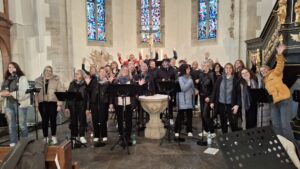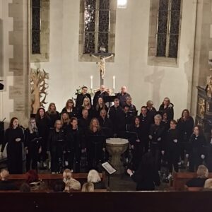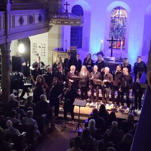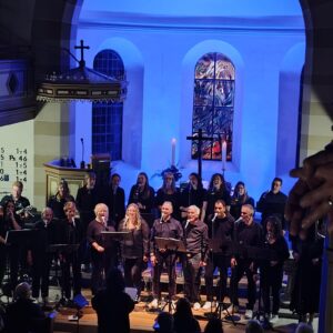 In einer Verbindung von Glaube und Musik feierte der Rock- und Popchor CHORUSO, zusammen mit der Eltern-Lehrer-Band Unexpected Skills der Gemeinschaftsschule Wüstenrot, ein unvergessliches Konzert in der ev. Kirche in Neuhütten.Unter dem Motto „A Sykyful of Stars“ präsentierten die mehr als 15 Sängerinnen und Sänger des Chors unter der Leitung von Doreen Marx ein abwechslungsreiches Programm, das das Publikum zum Mitfeiern und Mitsingen einlud. Die Veranstaltung begann mit einem energiegeladenen Auftakt, der sofort zur Stimmung beitrug. Mit dem kraftvollen Song „A Sykyful of Stars“ von Coldplay entführten CHORUSO und die Band die Zuhörer in eine musikalische Welt voller Leidenschaft und Freude. Der Klang der Stimmen und der Instrumente erweckte die Kirche zum Leben und ließ die Besucher nicht mehr stillsitzen. Die anschließenden Darbietungen reichten von zeitlosen Hits wie „California Dreaming“, Africa, Fight Song, When we were Young  bis zu modernen Songs wie „Skyfall“ von Adele. Die Kombination aus Chorharmonien und rockigen Arrangements schaffte eine einzigartige Atmosphäre, die sowohl Jung als auch Alt in ihren Bann zog. Besonders grandios war die gemeinsame Interpretation „Old Time Rock’n Roll“, bei der das Publikum mitreißend mit einstimmen konnte. Neben der musikalischen Darbietung legte der Abend auch großen Wert auf die soziale Komponente. Carmen Fleischhacker  betonte in ihren kurzen Ansprachen zwischendurch, dass Musik eine universelle Sprache ist, die verbindet und Hoffnung schenkt. Diese Botschaft fand bei den Anwesenden großen Anklang und schuf eine herzliche Gemeinschaft. Die Band brillierte nicht nur mit musikalischem Können, sondern auch durch ihre Bühnenpräsenz. Die Chemie zwischen den Musikern und dem Chor war deutlich spürbar und trug dazu bei, dass das ganze Event zu einem harmonischen Gesamtkunstwerk wurde. Abgerundet wurde der Abend mit dem Gospel „Wrap your Arms around me“, der alle Anwesenden dazu einlud, gemeinsam eine wunderbare Erfahrung zu teilen. Die Zuschauer verließen die Kirche mit einem Lächeln auf den Lippen und dem Gefühl, Teil von etwas ganz Besonderem gewesen zu sein. Die Resonanz auf das Konzert war überwältigend. „Es war ein fantastisches Erlebnis, das uns alle näher zusammengebracht hat“, sagte eine begeisterte Besucherin. Auch viele Gemeindemitglieder lobten das Engagement und die Leidenschaft des Chors und der Band. Das Konzert des Rock- und Popchors CHORUSO mit Band war ein eindrucksvolles Beispiel dafür, wie Musik Brücken bauen und Menschen zusammenbringen kann. Mit einem versprechen, auch in Zukunft weitere unvergessliche Konzerte zu gestalten, war der Abend ein voller Erfolg und hinterließ einen bleibenden Eindruck in den Herzen der Zuhörer. Vielen Dank – Ihr alle habt den Abend zu etwas Besonderem gemacht.  ust.